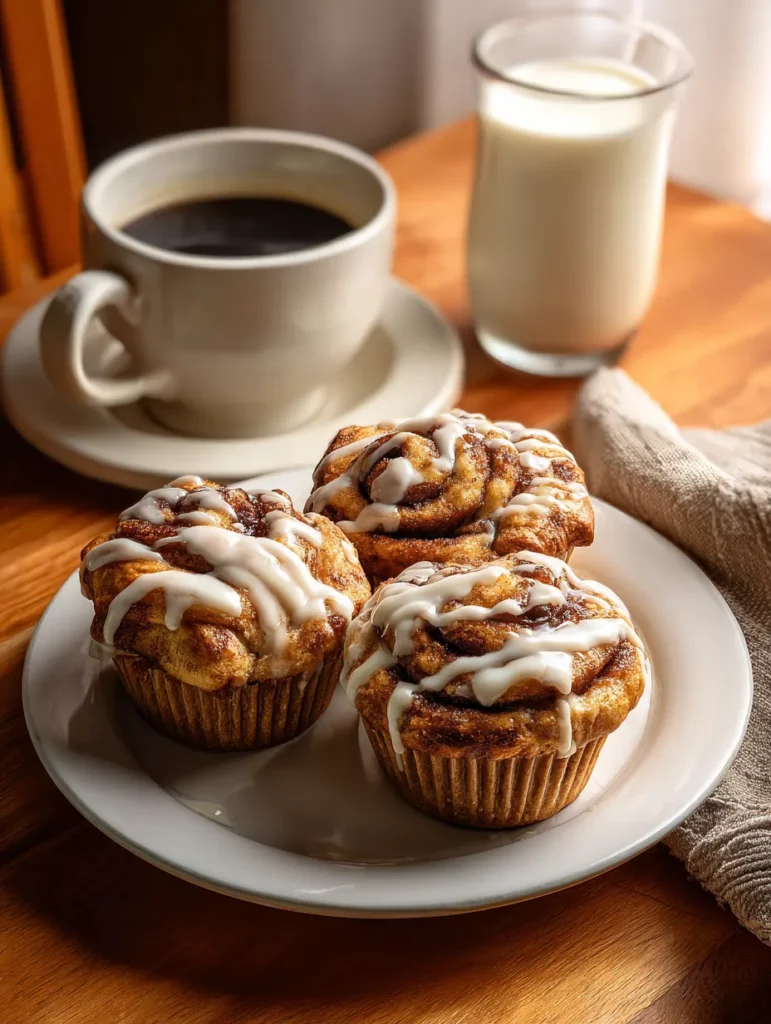 Each bite delivers layers of buttery cinnamon-sugar swirls wrapped inside a tender muffin crumb, all finished with a silky vanilla glaze that melts into every crevice. They’re perfect for lazy weekend breakfasts, afternoon coffee breaks, or even as a dessert that feels like a warm hug.