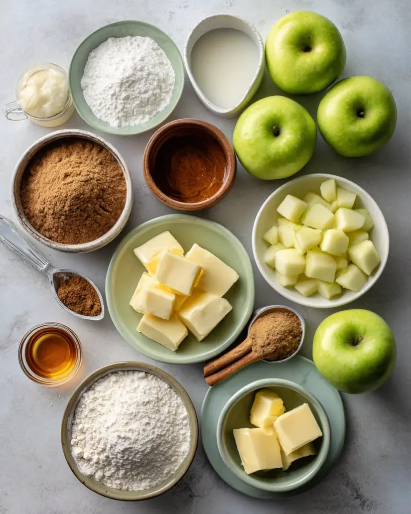 These ingredients are versatile, and you can always tweak them based on what you have at home. If you’re feeling adventurous, consider adding oats to the crumble for extra texture or swapping out Granny Smith apples for a sweeter variety. The exact quantities of each ingredient, along with additional tips, are at the bottom of the article for your convenience. Happy cooking!