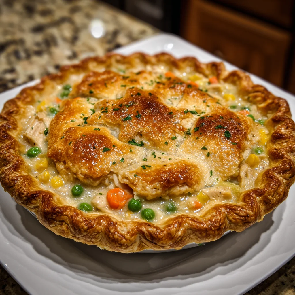 Classic Chicken Pot Pie is a comforting dish filled with tender chicken, vegetables, and a creamy sauce, all encased in a flaky pie crust.