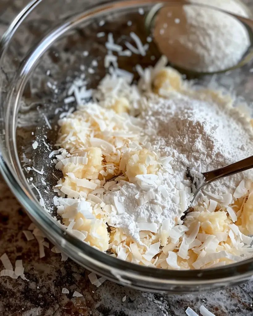Once everything is mixed together, you get a thick, sticky coconut dough that’s easy to shape once slightly chilled. The mix should be moldable—not dry, not runny. If it’s too soft, a few tablespoons more coconut will fix it right up.