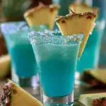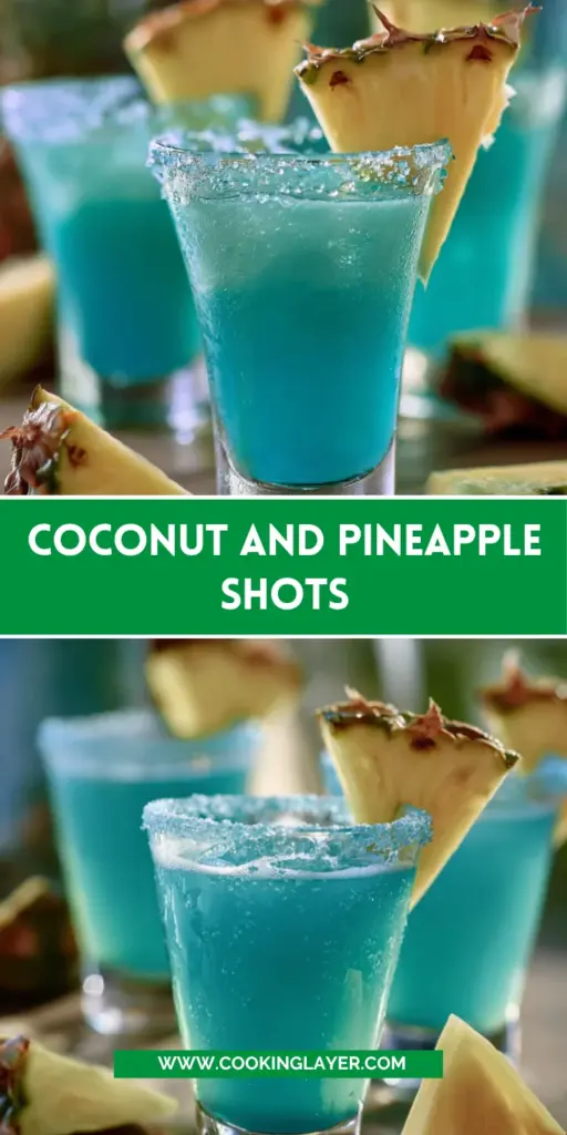 Coconut and Pineapple Shots – a tropical blend of coconut rum, pineapple juice, and blue curaçao for a refreshing party drink.