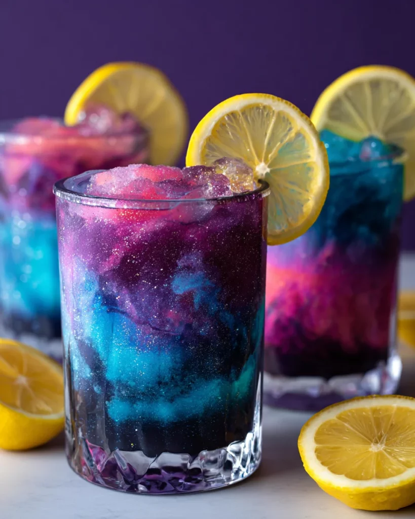 - Optional Garnishes: Silver star sprinkles or pearl dust create a galaxy effect, while lemon slices and mint add extra flair.