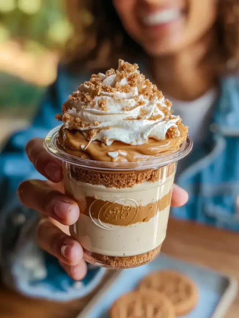 🍪 A decadent, creamy cheesecake cup layered with buttery Biscoff crumbs, swirls of cookie butter sauce, and topped with a whipped cheesecake swirl. Every spoonful is a dreamy indulgence! 😍