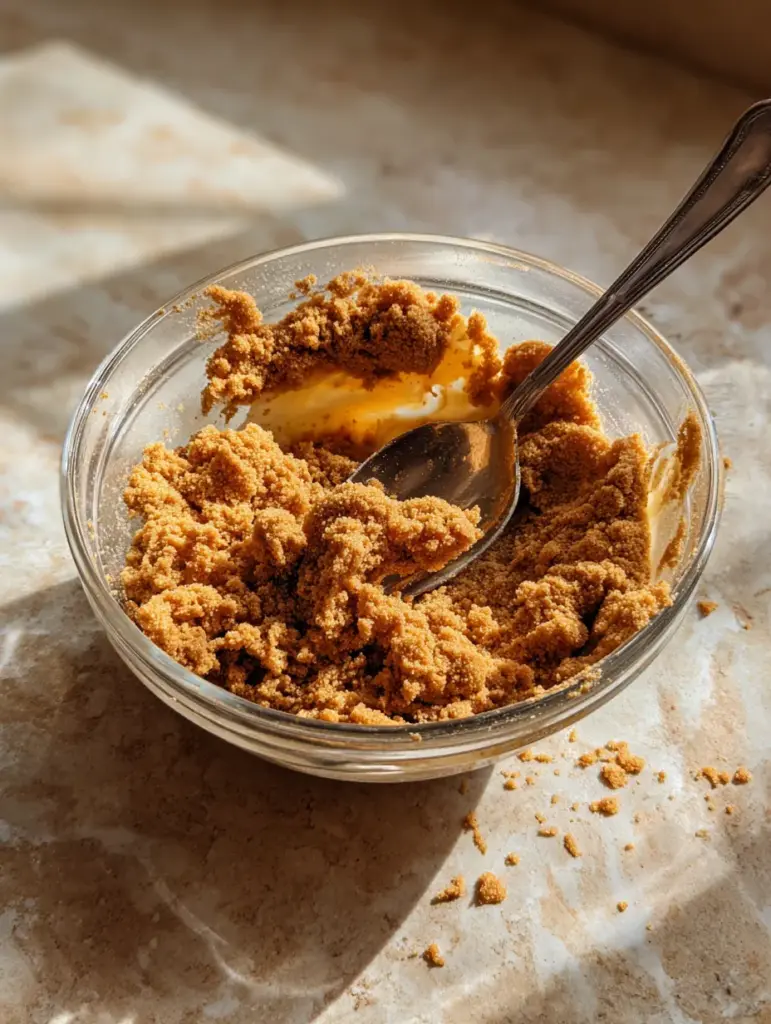Mix Biscoff cookie crumbs with melted butter until combined. 🥄
