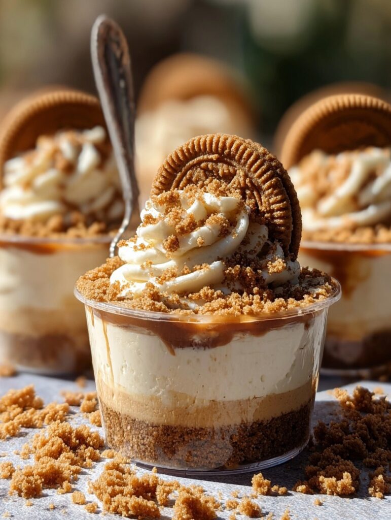 Before diving in, let’s get an overview. These Cookie Butter Cheesecake Cups are made in small individual cups, making them perfect for portion control (though honestly, you’ll want more than one).