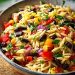 A refreshing and flavorful pasta salad featuring orzo, black beans, corn, and a zesty dressing.