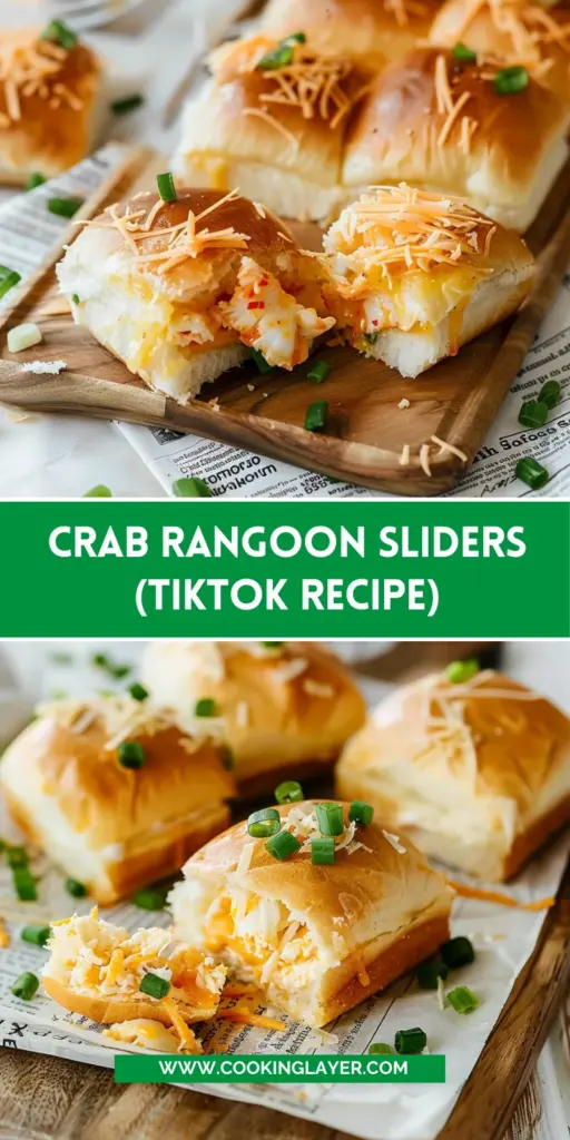 Creating these Crab Rangoon Sliders (Tiktok Recipe) has been a delightful culinary adventure that brings joy to my kitchen and smiles to my table. They effortlessly blend creamy, savory flavors with the warmth of freshly baked rolls, making everyone feel right at home. Whether it’s a family gathering or a simple weeknight treat, these sliders have a way of turning ordinary moments into unforgettable memories. So, roll up your sleeves and give them a try! You won’t just be serving food; you’ll be sharing happiness, and that’s the best ingredient of all!