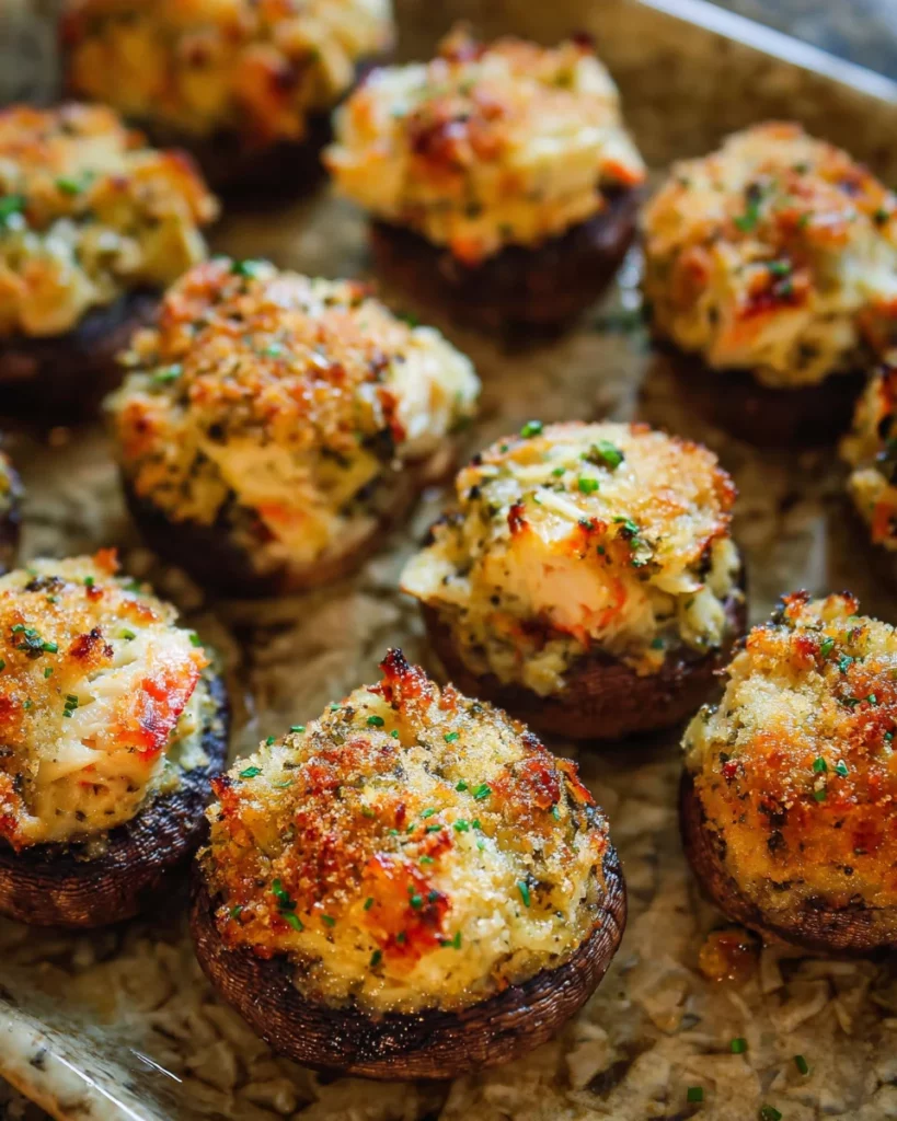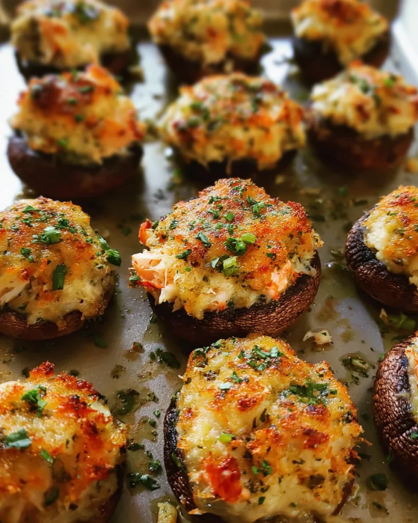 Delicious Crab Stuffed Mushrooms, perfect as an appetizer.