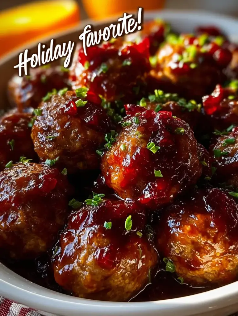 ✨ These tender little meatballs bathe in the most delicious sweet-tangy cranberry orange glaze. Every time the aroma fills my kitchen, it takes me back to those joyful holiday evenings when everyone hovered around the slow cooker waiting for “just one more.” 🍊🍒