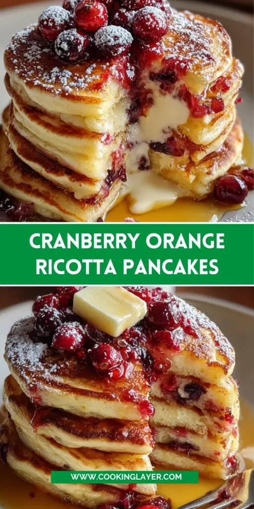 Cranberry Orange Ricotta Pancakes delight your taste buds with their fluffy texture and zesty flavor.