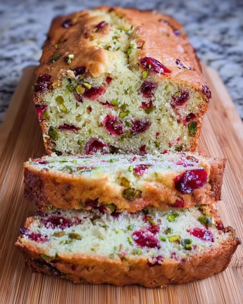 Cranberry Pistachio Bread is a moist and flavorful bread combining the tartness of cranberries with the nutty crunch of pistachios, perfect for any occasion.