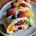 Creamy Fruit Salad Rollups are a delightful and refreshing treat that combines the rich flavor of cream cheese with a mix of fresh fruits, all wrapped in a soft tortilla.