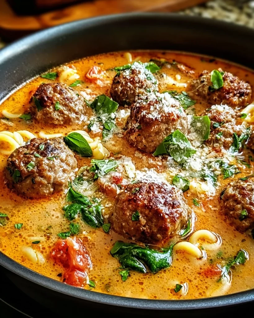 Making Creamy Italian Meatball Soup is more than just cooking; it’s creating a moment of joy for yourself and your family. Each spoonful offers warmth and comfort, wrapping you in flavors that evoke memories of sitting around the dinner table with loved ones. This recipe is not only easy to whip up on a busy day, but it also has the power to transform an ordinary meal into something extraordinary. So, gather your ingredients, unleash your inner chef, and dive into a bowl of deliciousness that brings smiles and heartfelt conversations. Trust me, it’s a dish worth making time for!