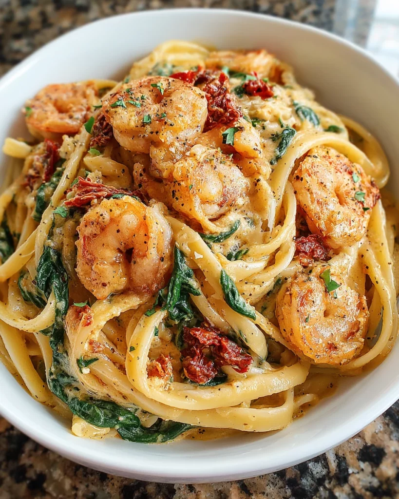 Making Creamy Tuscan Shrimp Linguine isn’t just about cooking; it’s about creating memories in your kitchen. The warmth of the creamy sauce, the sweet shrimp, and the bright spinach come together in a harmony that lifts spirits at the dinner table. This dish is a delightful way to show love to your family after a busy day. When you serve it, you’ll witness smiles bloom as wide as the pasta noodles themselves. So gather your loved ones, twirl some linguine, and savor every comforting bite. Your kitchen will hum with joy, and so will your hearts!