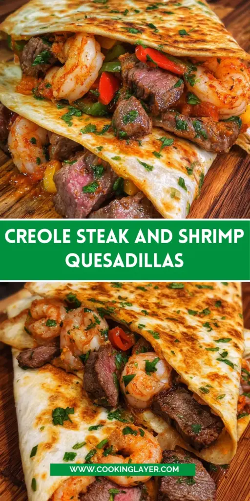 Creating these Creole Steak and Shrimp Quesadillas isn’t just about cooking; it’s an experience filled with joy. The vibrant colors and bold flavors bring life to the table, making mealtime a celebration. I love the way they encourage laughter and conversation among family and friends. Each bite is a warm hug, a little piece of happiness wrapped in a tortilla. Whether it’s a hectic weeknight or a cozy weekend gathering, these quesadillas turn every moment into a flavorful adventure. So, roll up your sleeves and dive into this culinary delight—you’ll be glad you did!