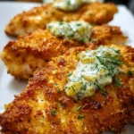 Crispy Dill Pickle Parmesan Chicken is a deliciously marinated and breaded chicken dish that combines tangy dill pickle juice with crispy breadcrumbs and Parmesan cheese.