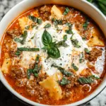 A warm and comforting soup that combines the flavors of lasagna into a delicious slow-cooked dish perfect for dinner.