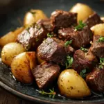 - Cover and cook on low for 6–8 hours (or on high for 4–5 hours) until the potatoes are tender and the steak is juicy.
