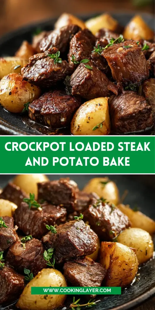 A delicious and hearty Crockpot Loaded Steak and Potato Bake, perfect for an easy dinner.