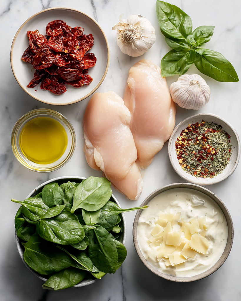 Gathering the ingredients for this Crockpot Tuscan Chicken is half the fun! Each one brings its own flair to this dish, making it not only delicious but also satisfying to prepare.
