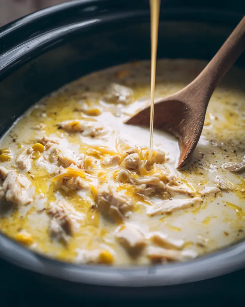 Congratulations! You’ve made it this far! Now, it’s time to remove the chicken from the crockpot. Using two forks, shred the chicken into bite-sized pieces. This step is crucial as it lets the flavors mingle into the chili, making each bite a creamy delight. Don’t be shy—really break it up so every spoonful is packed with chicken. This is the heart of your Crockpot White Chicken Chili Easy!