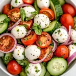 Is this Cucumber Mozzarella Salad suitable for a vegetarian diet? Yes, it’s perfect for vegetarians! With fresh veggies and creamy mozzarella, it’s both nourishing and satisfying.