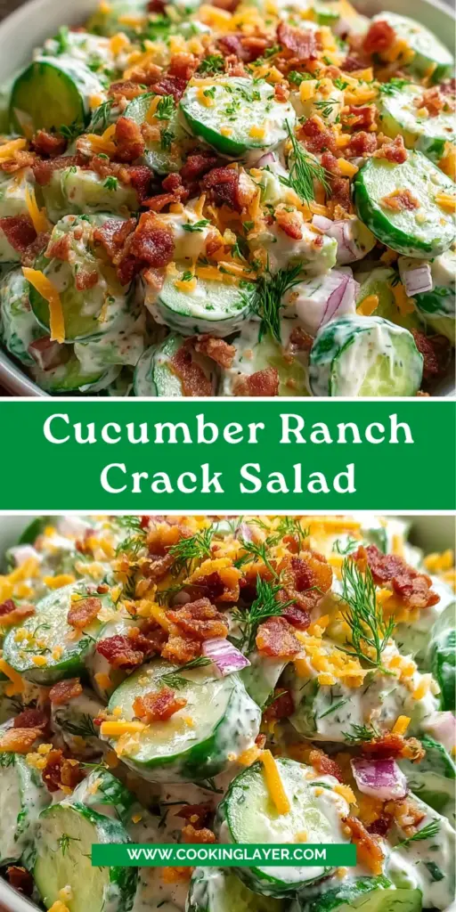 Bringing together crunchy cucumbers, creamy dressing, and savory bacon, Cucumber Ranch Crack Salad is truly a joy to make and share. It’s not just a recipe; it’s a delightful experience that elevates any meal. Every bite bursts with flavors that leave your taste buds dancing! Whether you whip it up for a family dinner or a potluck, this salad guarantees smiles all around. Plus, the best part? It comes together quickly, making it a practical choice for busy days. So get your ingredients ready, and let this creamy salad add a touch of happiness to your table!