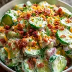 What makes it so addictive is the contrast. You’ve got the crisp, refreshing crunch of cucumbers paired with a rich, creamy dressing. Then comes the smoky bacon, the sharpness of cheddar cheese, and that unmistakable ranch flavor tying everything together. It hits multiple flavor notes at once—fresh, savory, tangy, and creamy.