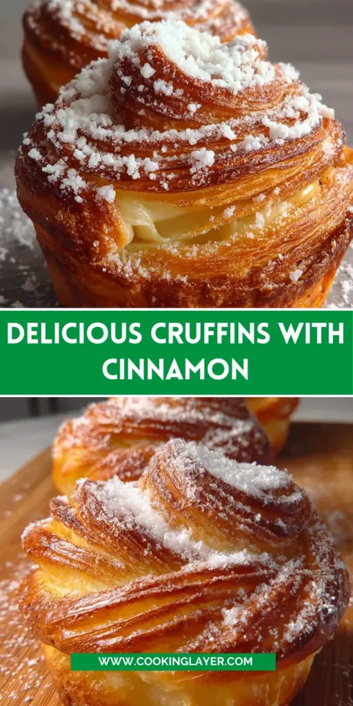 Delicious Cruffins with Cinnamon are flaky, filled pastries that combine the textures of croissants and muffins, enhanced with a sweet cinnamon filling.