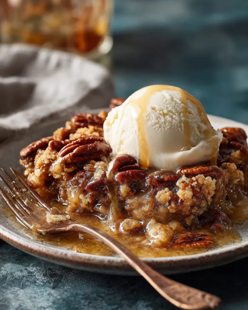 Topped with vanilla ice cream, this dessert becomes pure magic, melting slightly into the warm filling for a bite that feels like a hug in dessert form. It’s Southern comfort in its finest form—simple, rich, and brimming with flavor.