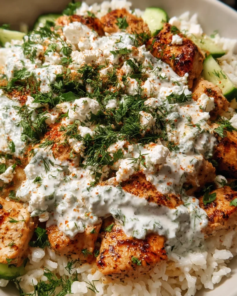 A simple and delicious Dump and Bake Chicken Tzatziki recipe that combines tender chicken, flavorful spices, and creamy tzatziki sauce baked over a bed of rice.