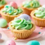 Easter Basket Sugar Cookie Cups are delightful cookie cups filled with buttery frosting and topped with colorful candy eggs, perfect for celebrating the Easter holiday.