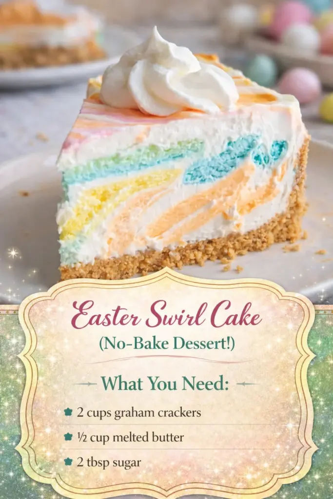 Looking for an easy, colorful dessert? This Easter Swirl Cake is creamy, light, and full of spring vibes! With a buttery graham crust and soft pastel swirls, it’s the perfect no-bake treat for your holiday table. 🤩✨