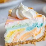 At its core, this is a no-bake cheesecake-style dessert made with a light cream cheese filling that’s been divided and colored into beautiful pastel shades. These colors are then gently swirled together, creating a marbled effect that looks almost like edible art. Once chilled, the filling firms up just enough to slice cleanly while still staying soft and creamy.