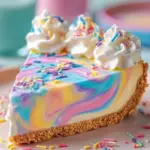 Finally, it’s time to show off your masterpiece! Carefully remove the pie from the fridge and add a generous dollop of whipped cream on top. A sprinkle of festive sprinkles adds the perfect finishing touch. Slice into the pie, serve it up, and get ready for the compliments to roll in. Your family and friends will be thrilled with this stunning sweet treat!