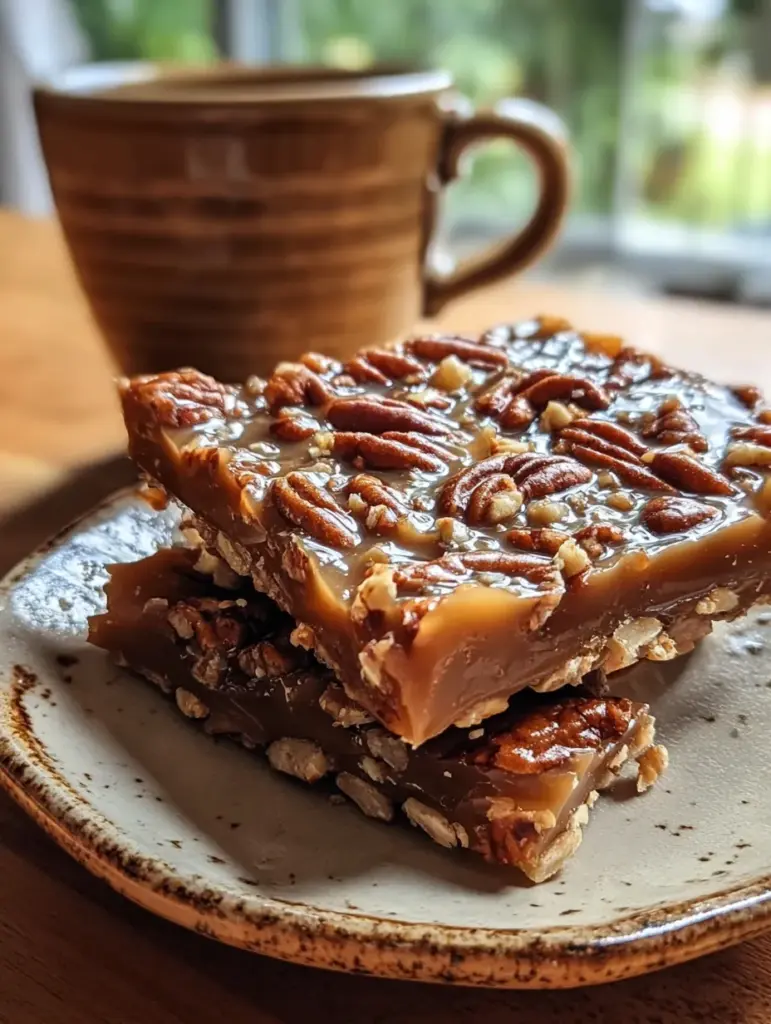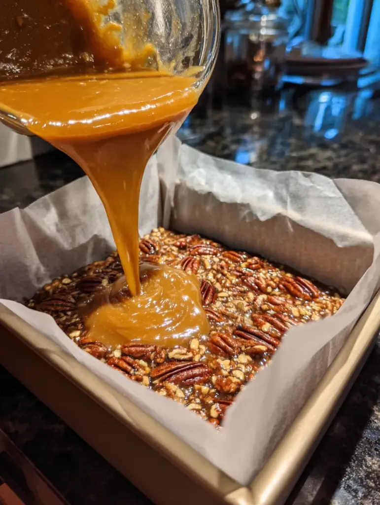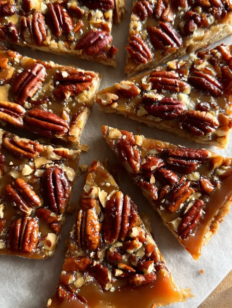 Imagine a soft toffee-meets-fudge texture, packed with toasted pecans, and just the right balance of salty and sweet. It’s rich, dense, and dangerously addictive — basically everything you love about the pie, but way easier.