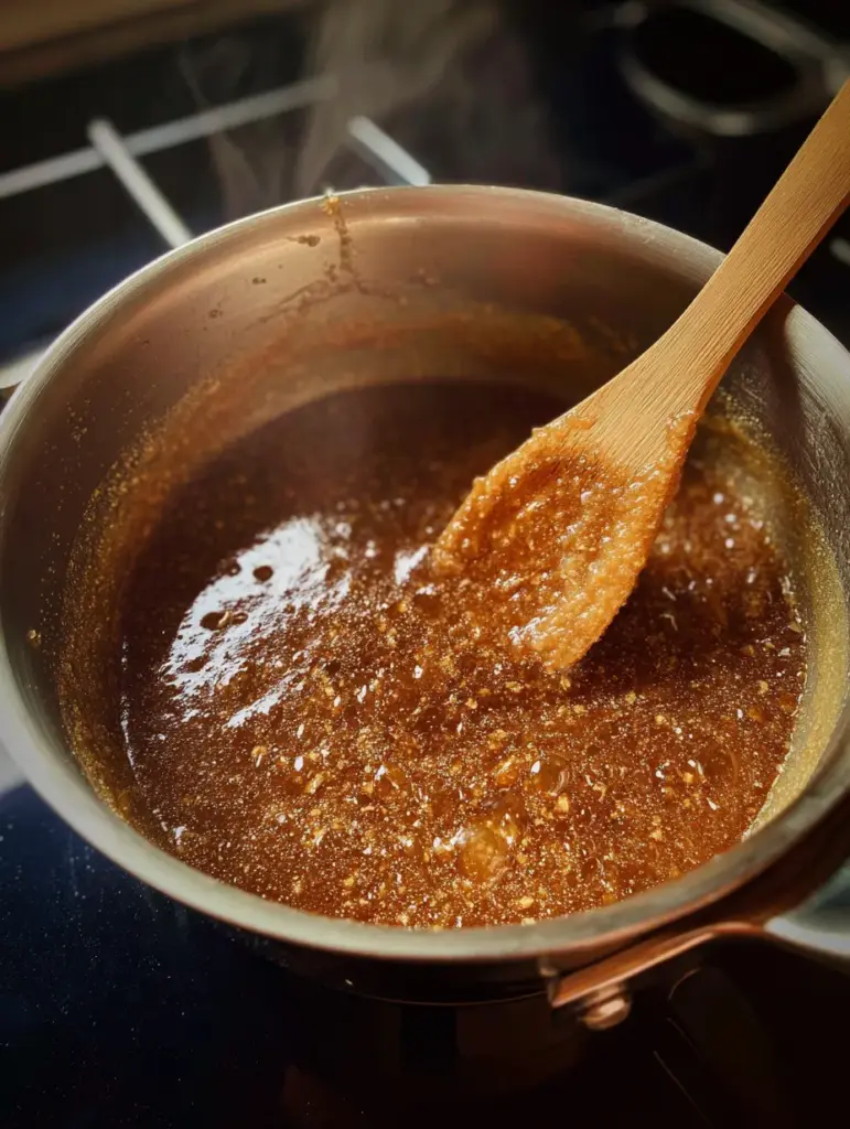 Bring the mixture to a gentle boil, then reduce heat slightly and cook until thick, glossy, and caramel-like, stirring nonstop (5–7 minutes). 🍯