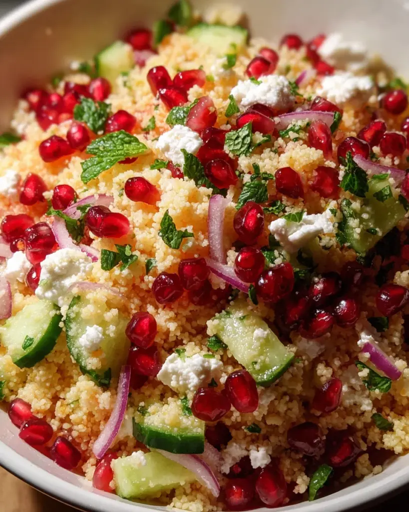 A refreshing and flavorful salad combining couscous, feta cheese, and pomegranate seeds, perfect for any occasion.