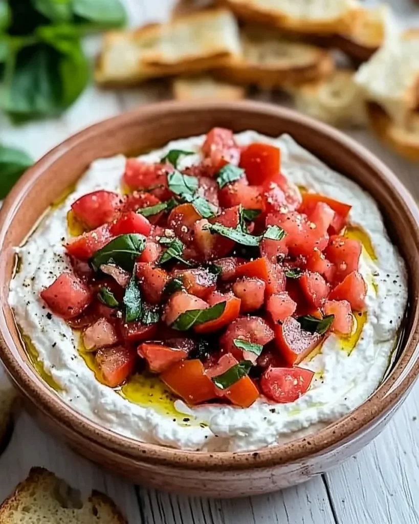 A flavorful and fresh bruschetta dip recipe that is easy to prepare and perfect for appetizers.