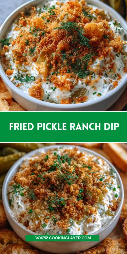 This Fried Pickle Ranch Dip delivers a burst of joy with every bite! Whether you’re hosting friends, enjoying a family movie night, or simply treating yourself after a long day, this dip makes any moment feel special. The creamy texture paired with the crunchy topping is an experience worth savoring. Plus, it’s a fun way to introduce a beloved Southern classic to your table. So, gather your ingredients, unleash your inner chef, and enjoy the smiles that come with sharing this delightful dip. Trust me, your taste buds will thank you, and so will your loved ones!