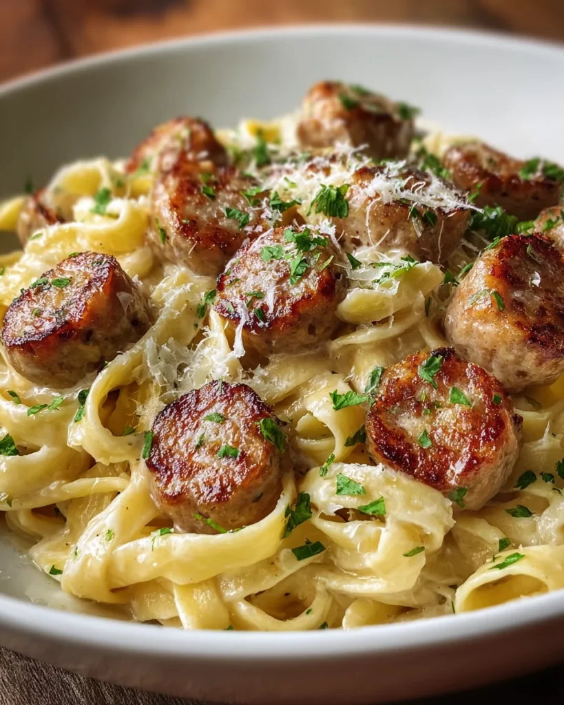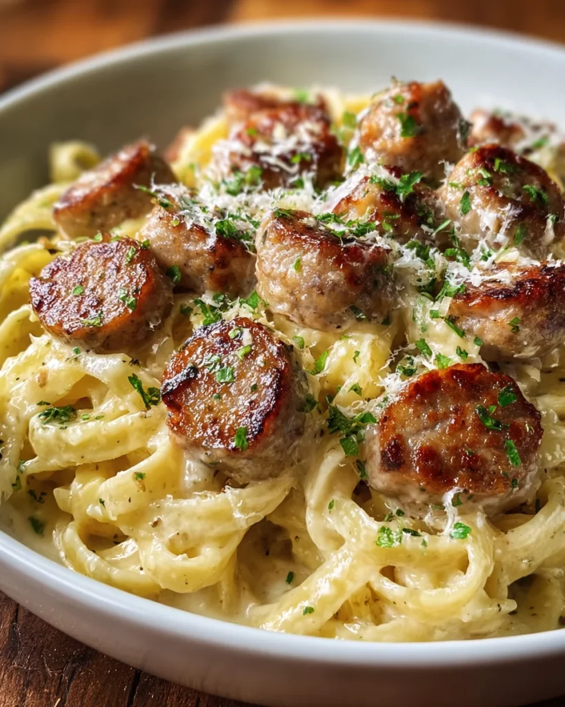At last, it’s time to serve! Arrange the creamy pasta on plates and top it with those gorgeous garlic butter sausage bites. For the finishing touch, garnish with extra grated Parmesan and a sprinkle of chopped fresh parsley. Your Garlic Butter Sausage Parmesan Pasta is ready to impress. Trust me, it’ll taste as wonderful as it looks!