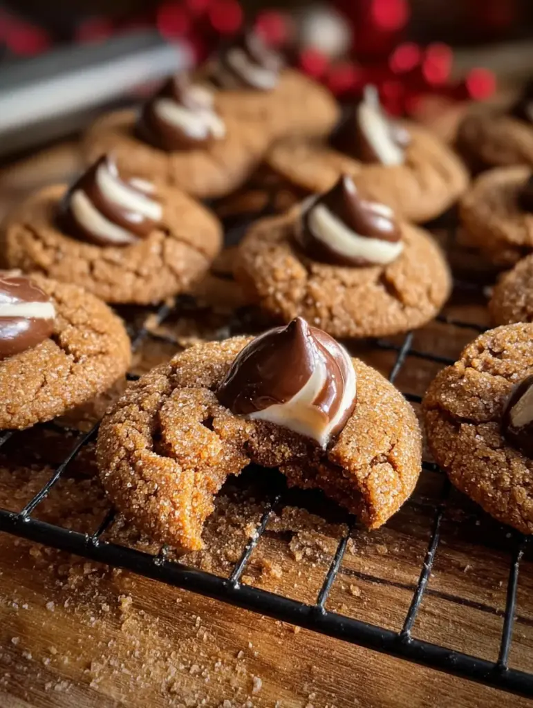 🎄✨ Warm, spiced, and melt-in-your-mouth! These festive gingerbread cookies topped with a classic chocolate kiss bring back the nostalgia of holiday kitchens filled with the scent of cinnamon, ginger, and cloves. Perfect for cozy winter evenings or gifting to loved ones! 🍪❤️