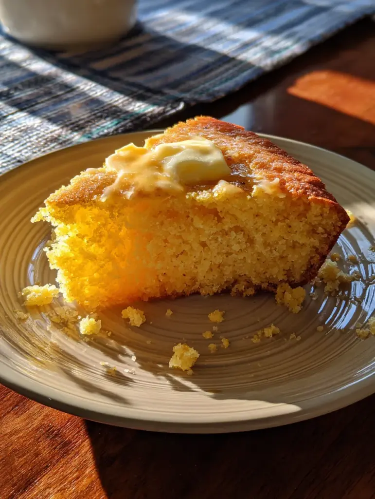 The image you attached shows all of this perfectly — a thick, evenly baked cornbread with a rich golden color and a crumb that’s soft but structured. That’s not an accident. That’s technique.