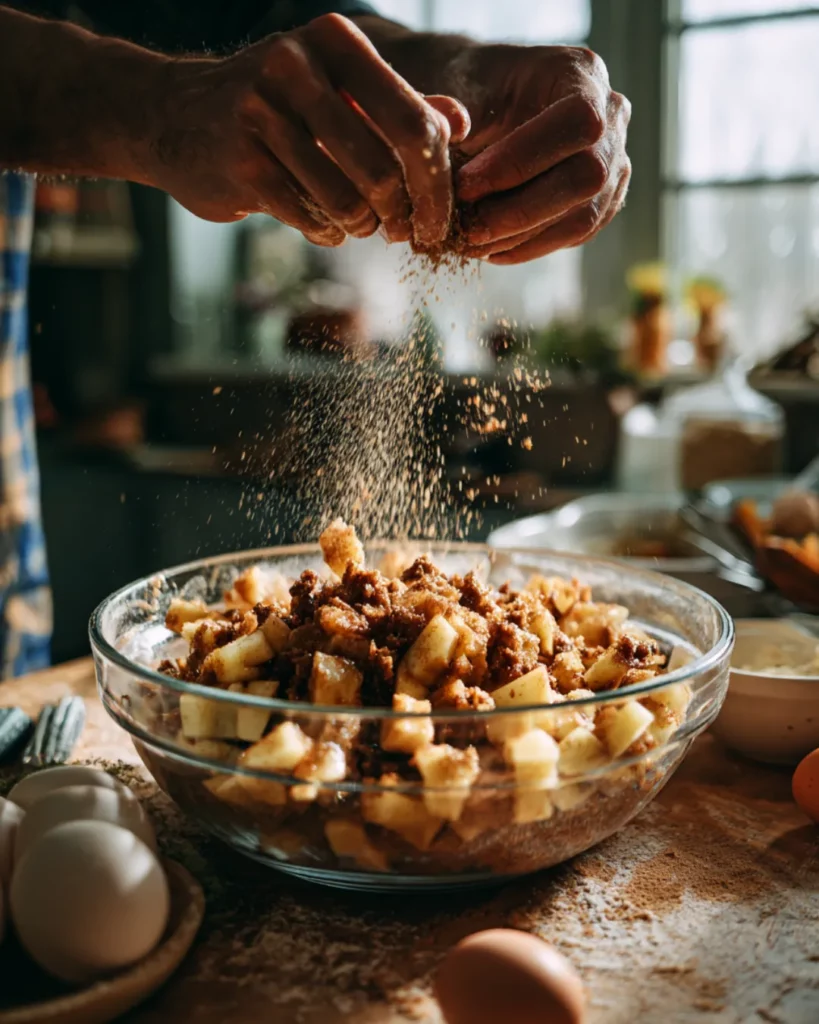 The mixture should smell heavenly already—like the essence of fall in a bowl. This filling isn’t just about sweetness; the cinnamon adds warmth, the brown sugar caramelizes during baking, and the salt ties it all together.