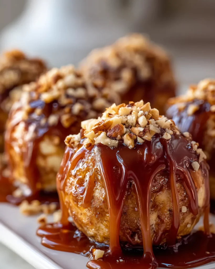 If you’re hosting friends or family, these bombs are guaranteed to be the star of the dessert table. They’re bite-sized (well, maybe two bites if you’re being polite), easy to serve, and look impressive with their glossy caramel drizzle and nutty topping. They’re festive enough for Thanksgiving, Christmas, or even a casual weekend brunch.