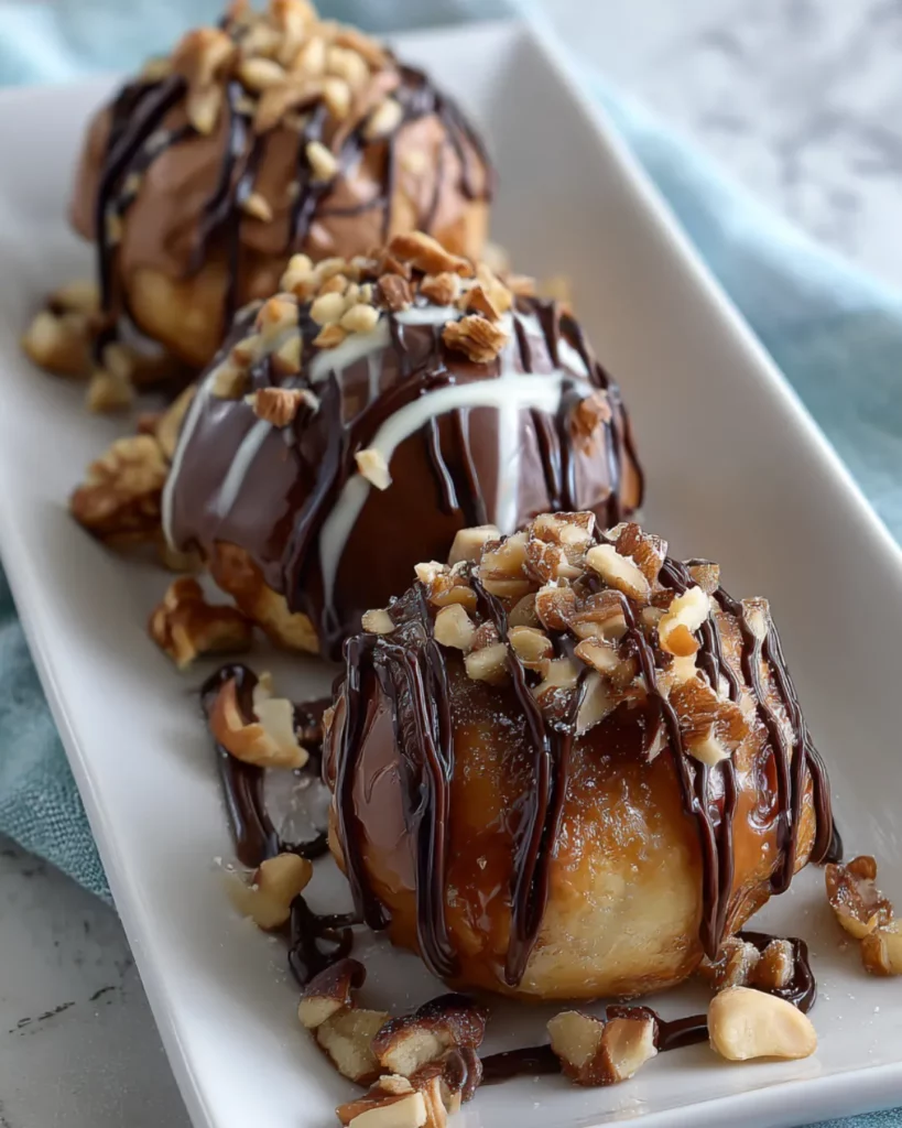 Take your warm bombs and drizzle them generously with caramel sauce. You can zigzag it back and forth for a bakery-style presentation or let it drip naturally for a rustic, homemade look. Either way, it’ll make your bombs glossy, sticky, and downright tempting.
