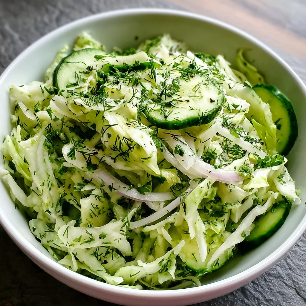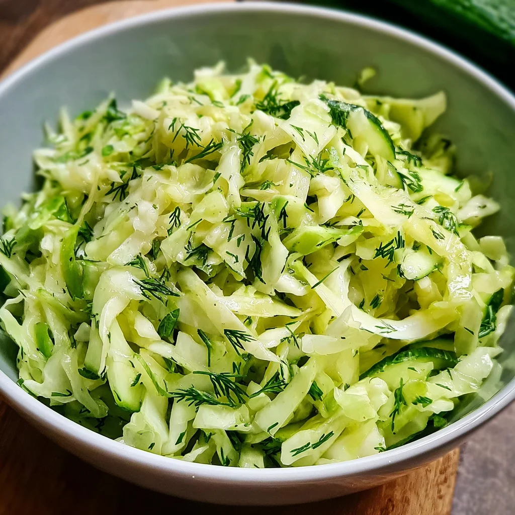 A refreshing salad made with green cabbage and cucumbers, perfect for your palate.