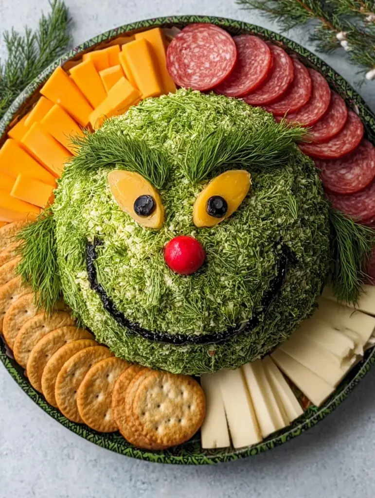 The Grinch Face Holiday Cheeseball isn’t just food—it’s full-blown holiday entertainment. Whether you’re throwing a big Christmas bash, hosting a cozy movie night, or building your most extra charcuterie board yet, this playful, fluffy, flavor-packed creation will absolutely steal the show (and maybe a few hearts too).