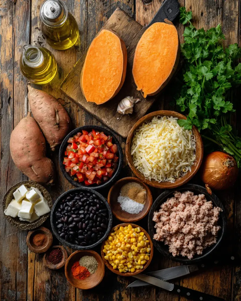 Let’s gather everything we need for these tasty Ground Turkey Stuffed Sweet Potatoes. Each ingredient plays a role in creating a satisfying, hearty meal. Here’s what to look for:
