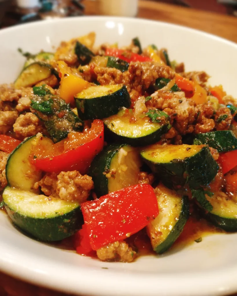 A quick and healthy skillet dish featuring ground turkey and zucchini, perfect for a nutritious meal.